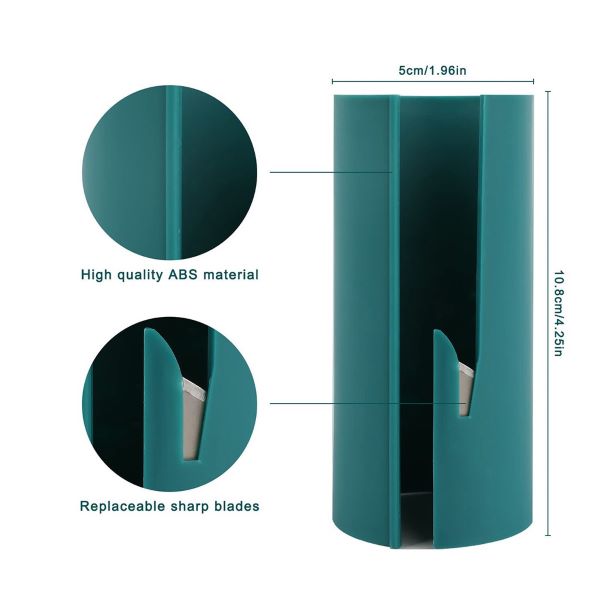 Konstrukcja obcinaka do rolek papieru do pakowania obejmuje wbudowane ostrze i mechanizm przesuwny.