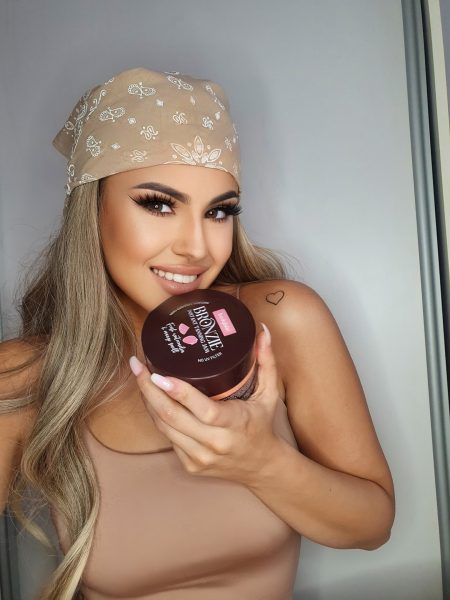 Bronzie jest wzbogacona organicznym masłem shea i masłem kakaowym, a także olejem z orzecha włoskiego dla złocistego blasku, mieszanką naturalnych składników odżywczych dla skóry oraz ekstraktem z marchwi dla głębszej opalenizny. Bronzie nawilża skórę, pozostawiając ją gładką, miękką i nawodnioną.