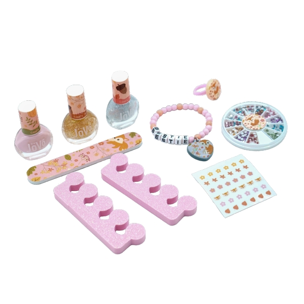 Urocza kosmetyczka dziecięca z motywem lisa jest idealnym towarzyszem dla najmłodszych. Zawiera zmywalne wodą lakiery do paznokci i akcesoria, a także zestaw do robienia bransoletek. Wykonana z trwałych materiałów, gwarantuje długą żywotność i łatwe czyszczenie. Etui jest wyposażone w bezpieczne zamknięcie, aby zapobiec przypadkowemu otwarciu.