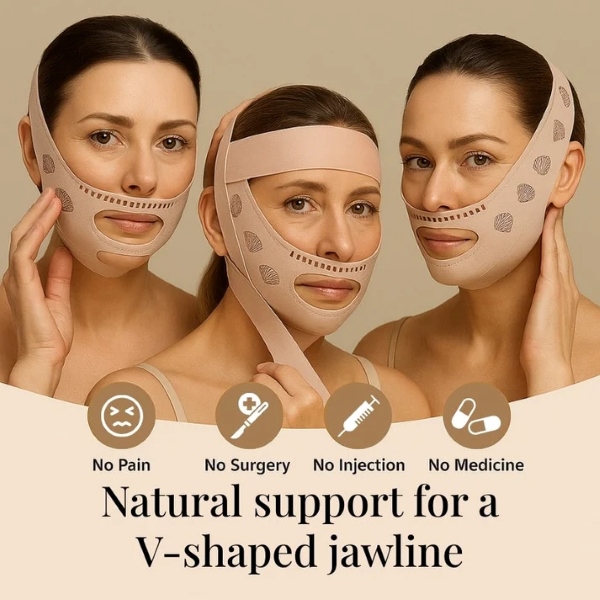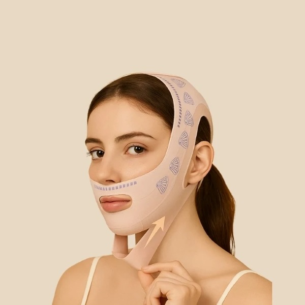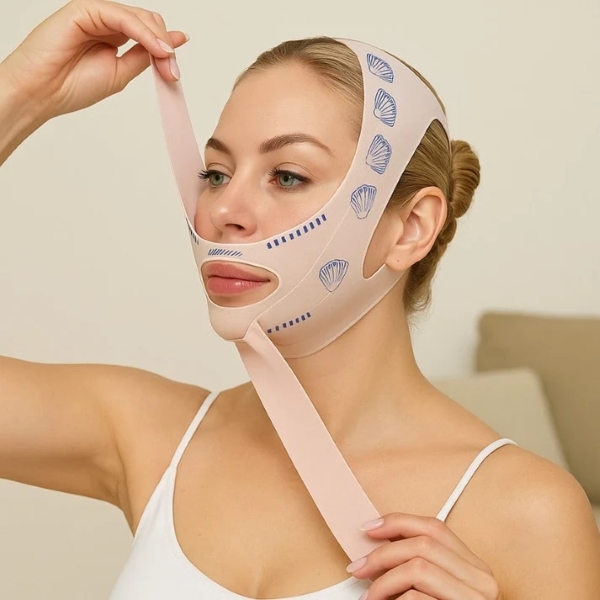 Miękki, unoszący ucisk pomaga zmniejszyć opuchliznę i z czasem podkreślić linię żuchwy.