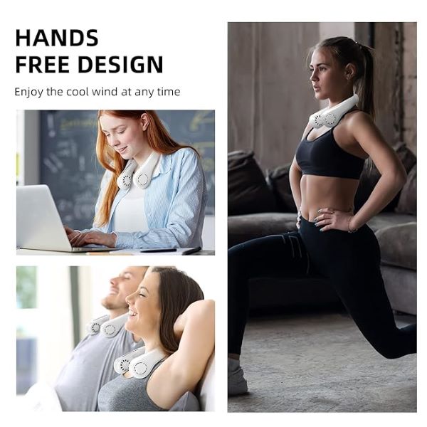 Wyposażony w unikalny kształt wylotu powietrza, ten wentylator na szyję jest nowatorskim rozwiązaniem zapewniającym chłodzenie bez zajmowania rąk.