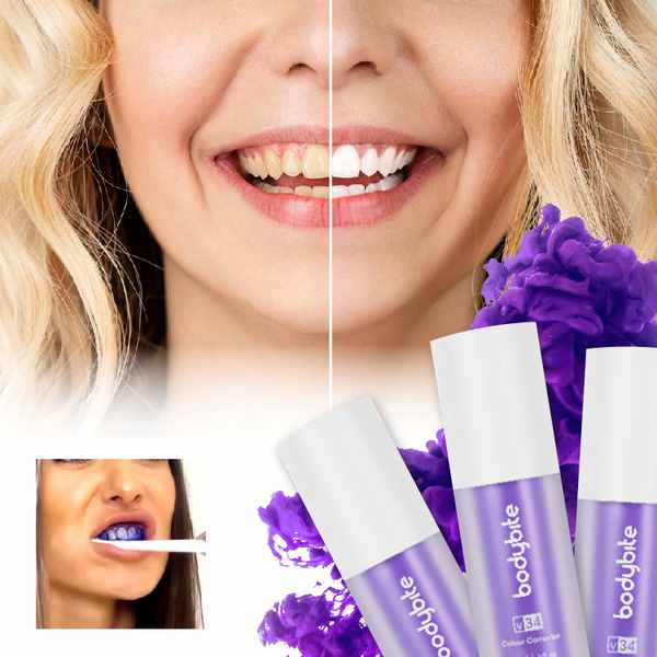 Stworzone, aby być delikatnym i nieściernym, V34 nadaje się do regularnego stosowania jako część rutyny higieny jamy ustnej. Efekt korekcji koloru został zaprojektowany specjalnie dla naturalnego szkliwa i nie zmieni odcienia licówek, koron, implantów, mostów ani zębów odbudowanych. W celu uzyskania spersonalizowanej porady zalecamy konsultację z dentystą przed użyciem.